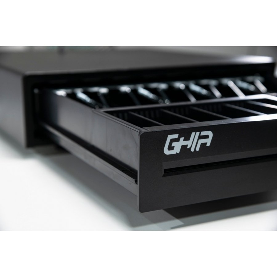 CAJON DE DINERO GHIA GCD481 / ACERO / 4 BILLETES / 8 MONEDAS / RJ11 / NEGRO