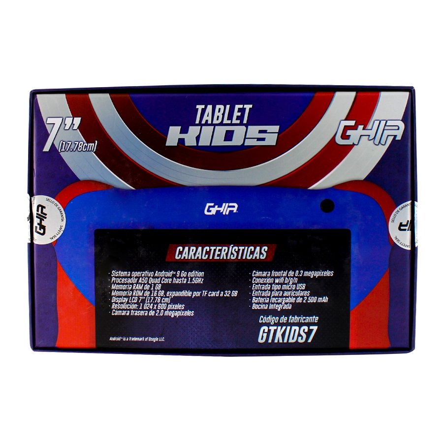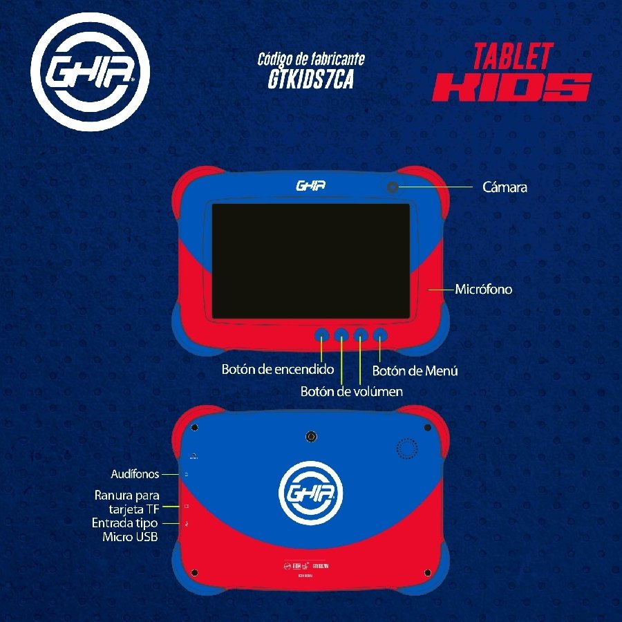 Tablet Para Niños Ghia 1GB Ram 16GB Memoria Wifi Bluetooth Android 9 Modelo GTKIDS7CA
