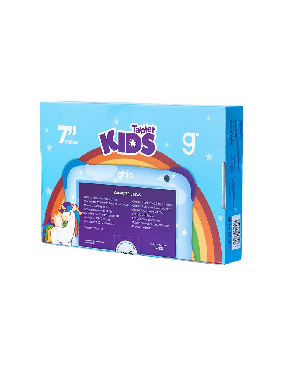 Tableta Kids Ghia Unicornio 4GB Ram 64GB Pantalla IPS 7 Pulg Android 15 Modelo GK333U25